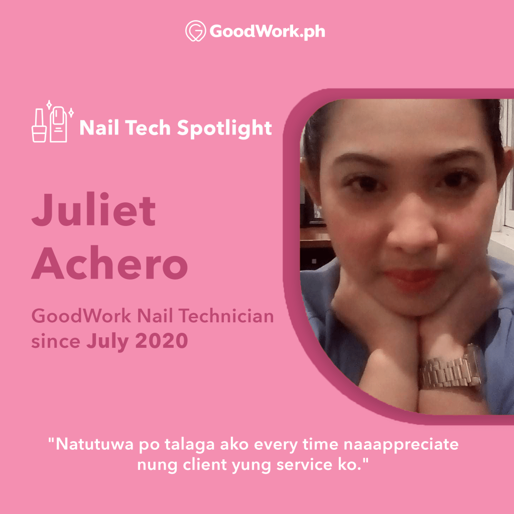 When we get our nails done by professionals, we don’t come out with just good-looking nails, we also come out feeling lighter emotionally because of the mini chika session we get with our favorite nail technicians. From GoodWork’s Nail Category are Juliet Achero and Anne Cristobal, who have plenty to share about their experiences at work and with customers.