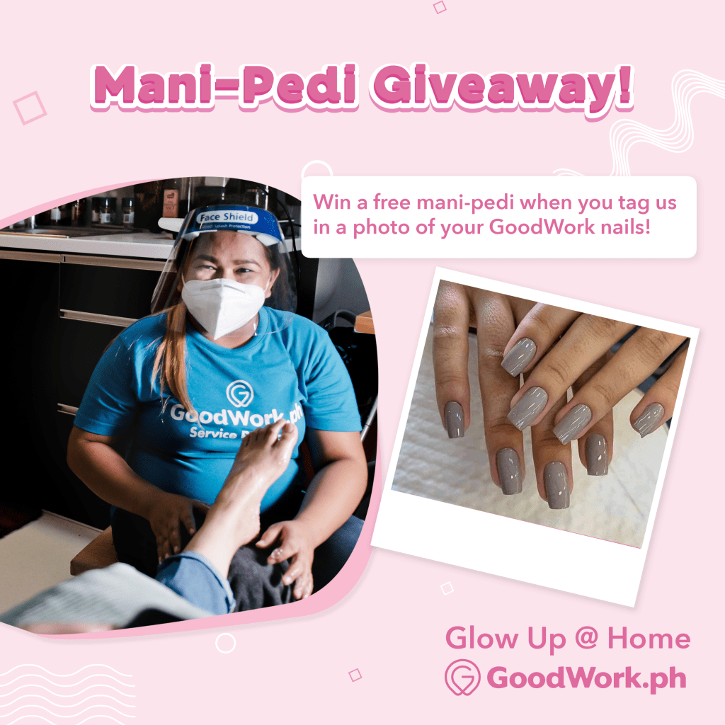 That’s right! We’re giving away a full mani-pedi package. ONE (1) lucky winner will get a free GoodWork Manicure and Pedicure. All you’d have to do is take a photo of your GoodWork nails and tag us! 💅🏻