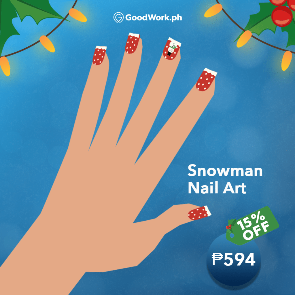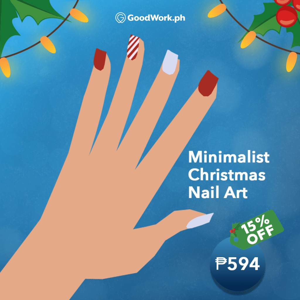 Check out our available Christmas-themed nail art designs and book from 12.12 to 12.15 to get 15% off! #PaskongGoodWork