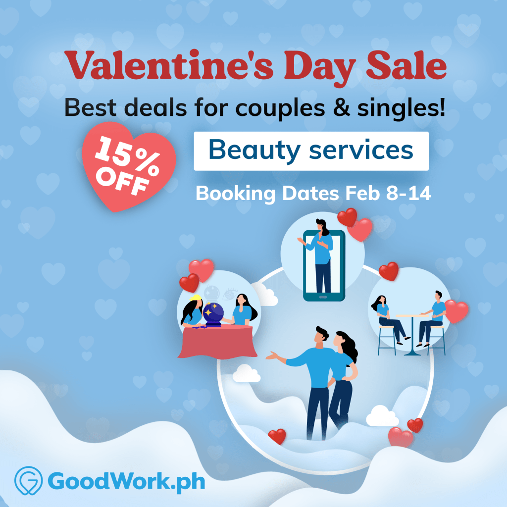 📲 Get 15% off all nails, hair, massage, and Lay Bare waxing home services when you book on the GoodWork app from February 8 to 14, 2021. Service can be scheduled on your preferred date and time.