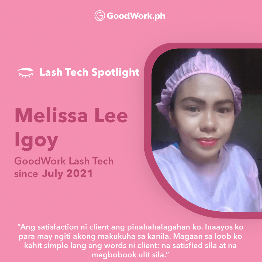 Meet Melissa Igoy, a GoodWork Lash Technician with years of experience in the beauty industry. Today, we shine the spotlight on her and the skills she generously shares with GoodWork users all over Metro Manila.